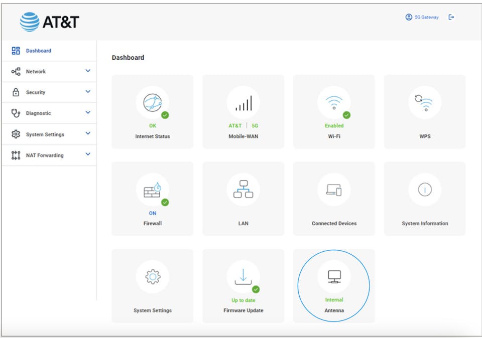The Gateway 5G should automatically switch to supporting the external antenna, but just in case it doesn't, you can toggle between internal and external antennas in the web UI.