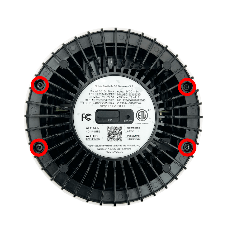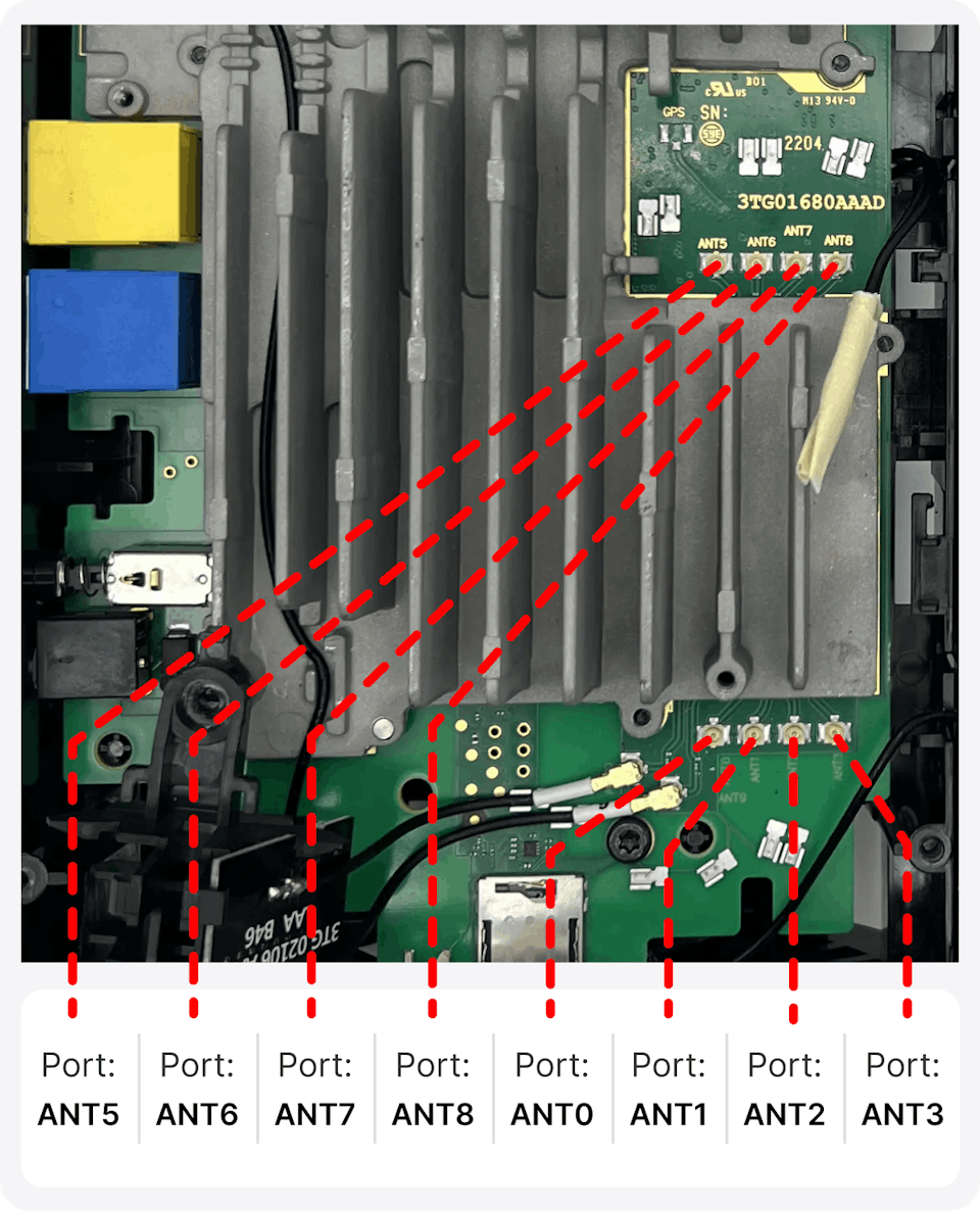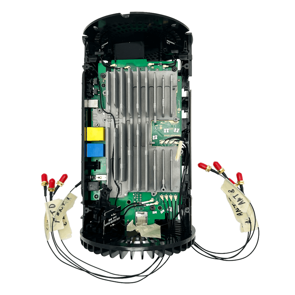 The Rogers Nokia FastMile 5G Gateway has eight internal U.FL ports, which allow for two 4x4 MIMO antennas to be connected to the device.