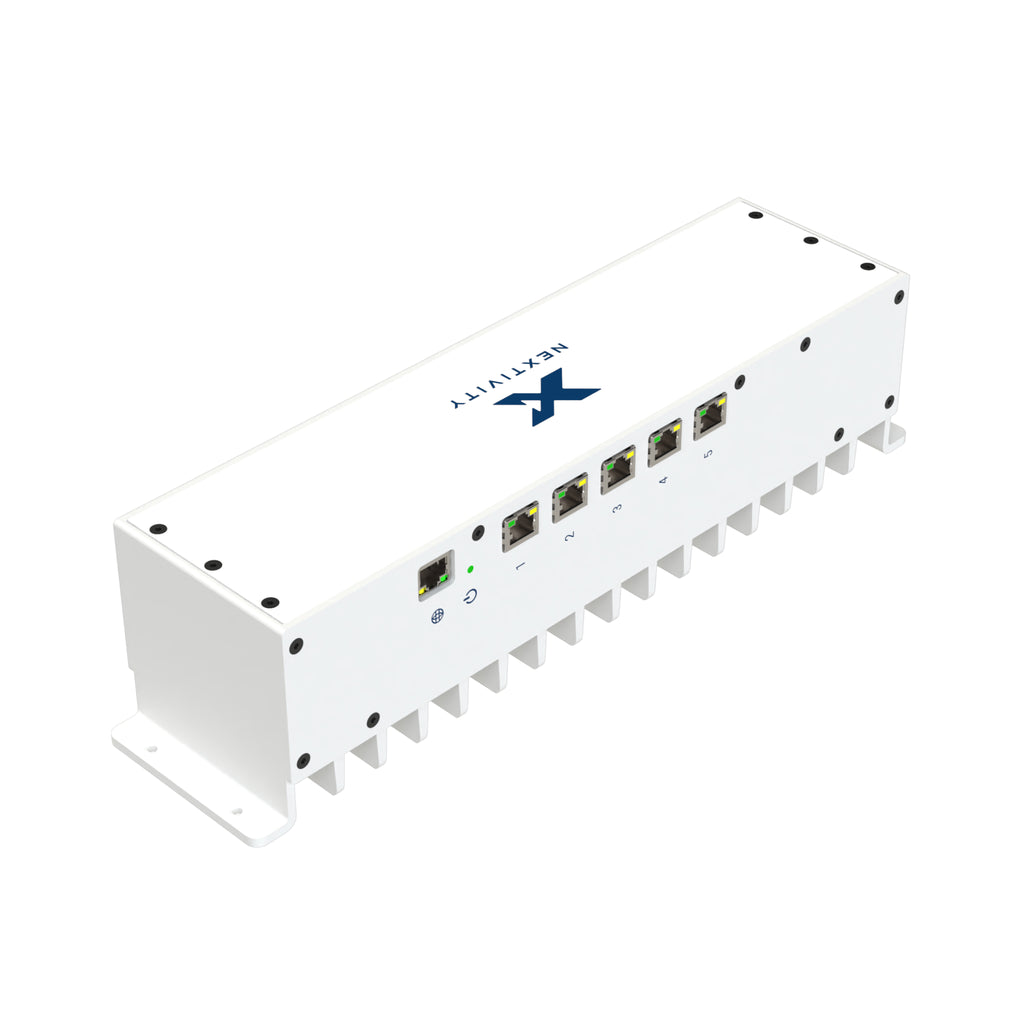 The Network Unit is the central hub of the QUATRA 100M system. It receives the donor signal from an external antenna or small-cell source and distributes it digitally to up to six Coverage Units using standard Cat 6 Ethernet cabling. Each NU provides both signal and power via PoE, making installation simple and scalable.