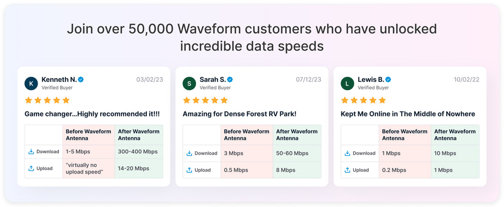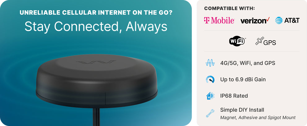 Upgrade your mobile internet in minutes with the all-new Waveform OmniRoam. This all-in-one mobile antenna offers superior performance in a sleek, low-profile design, ensuring easy and reliable connectivity, even on the edge of coverage.