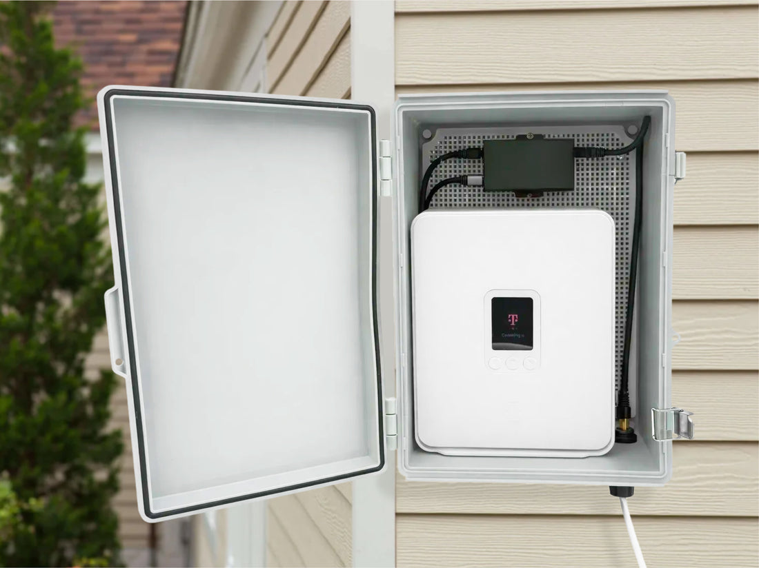 The enclosure itself is rated for outdoor use from −5°F to 167°F. In practice, the operating limits of the gateway matter most. We’ve tested the T-Mobile G5AR inside the enclosure from approximately −2°F to 125°F, where it operated reliably. Performance may vary with other gateways and conditions.