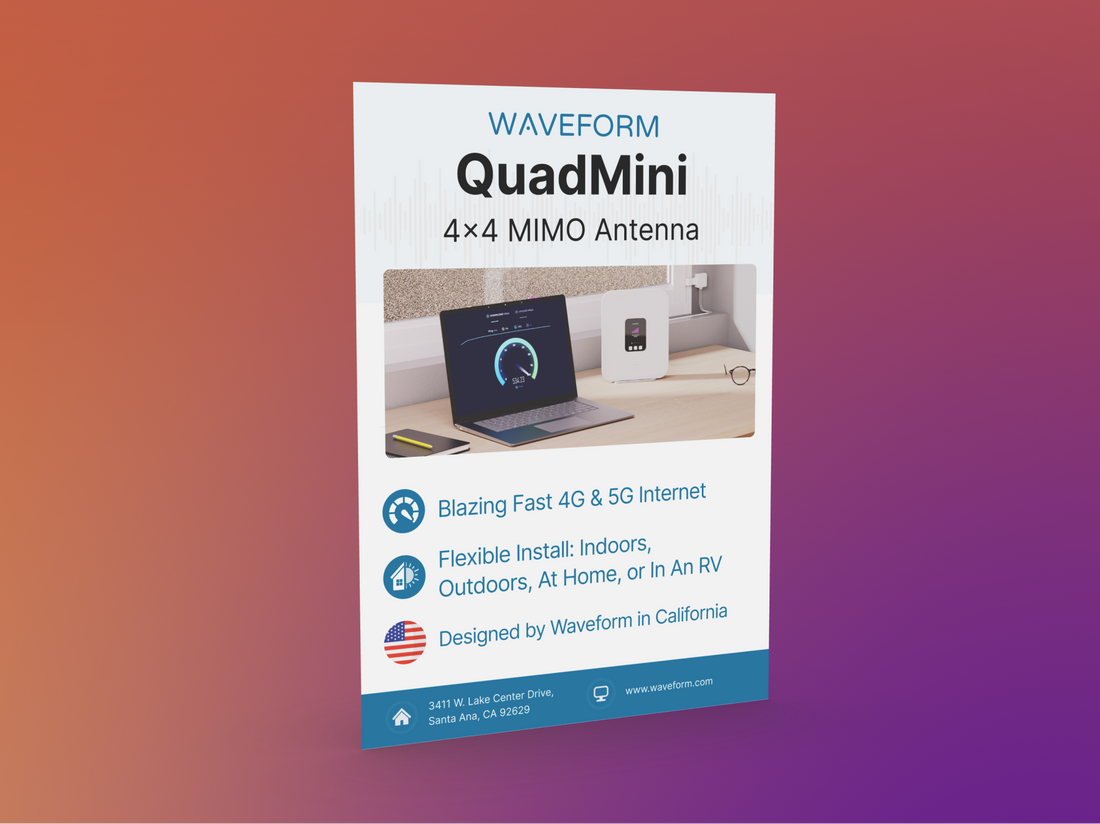Upgrade your 4G and 5G cellular internet in minutes with the all-new Waveform QuadMini. This compact antenna offers superior performance in a sleek, omnidirectional design, ensuring easy and reliable connectivity anywhere.
