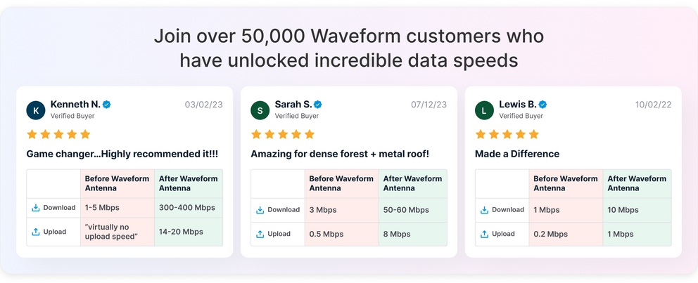 Even during peak congestion hours, stronger and clearer signal from a Waveform antenna means faster data rates in your home.