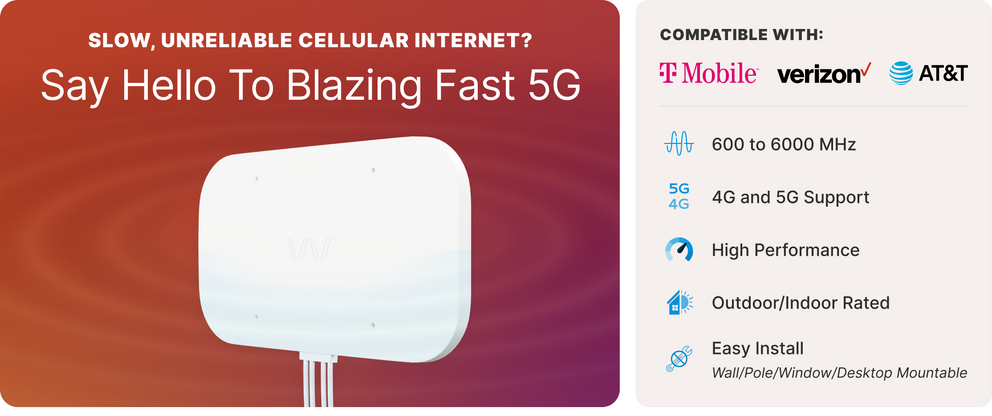 - Broad Compatibility: Covering 600 to 6000 MHz, QuadMini works with 5G cell service from every major US and Canadian carrier, and works seamlessly with T-Mobile and Verizon's 5G Home and Business Internet offerings.