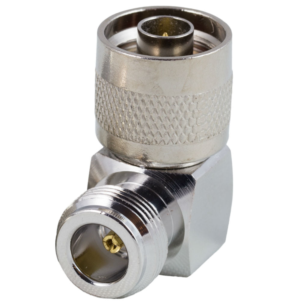 This adapter is useful for alleviating sharp bends at connections in N-type cable paths. If you wish to reduce the bending stress on a cable run with N-type cables, the Right Angle N-Male to N-Female Adapter can be used.