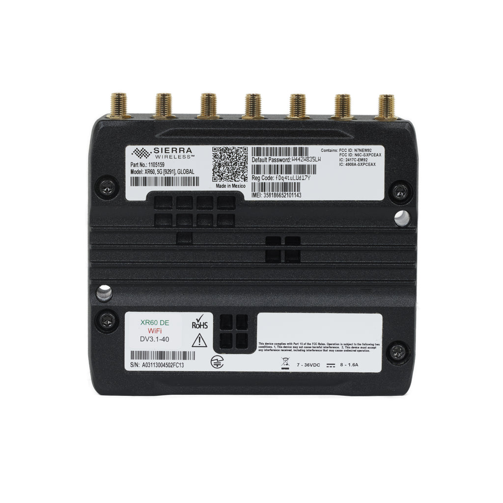 The AirLink XR60 is a compact, rugged 5G router designed for fixed and mobile deployments in harsh or space-constrained environments. Supporting CBRS Band 48 and a wide range of Sub-6 GHz LTE and 5G bands, the XR60 is ideal for digital signage, surveillance systems, smart city sensors, manufacturing floors, fleet vehicles, and fixed wireless sites.